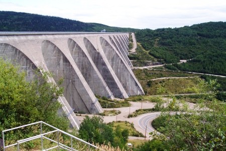 steep hill, you come across the overflow weir of the Manic-5 dam. The