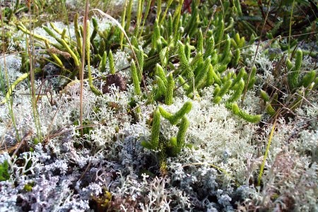 lot of lichens and mosses (as seen on the picture) cover the ground and