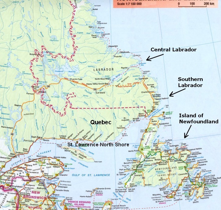 This next map shows how you can do a circle tour of Labrador and